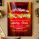 Esta invitación tiene cortinas como fondo para dar al diseño un aspecto teatral. Lettering of Broadway está diseñado con bombillas de luz en él para un aspecto más de estilo Broadway