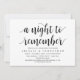 Anuncie su gusto después con estilo con nuestra moderna carta de invitación a la celebración de bodas de diseño rústico (Una noche a recordar). Es ideal para las parejas que han decidido celebrar la noche anterior a su gran día. Con un diseño sofisticado pero lúdico, esta invitación seguramente marcará el tono para un evento inolvidable. La tarjeta de invitación presenta un diseño verde, añadiendo un toque de elegancia rústica y atemporal a tu celebración. Diseñado por TeeshaDerrick