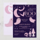 Un poco de halloween púrpura boo invitación a ducha de bebé plantilla editable descarga digital instantánea, un lindo bebé rosado fantasma bates celestes de luna y hongos Halloween otoño plantilla de invitación a ducha de bebé