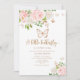 Una pequeña mariposa está en camino bebé rosas dorados sonrojados invitación a ducharse. Elementos coincidentes disponibles.