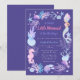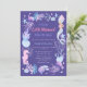 Invitación de cumpleaños de bebé niña con diseño de sirena bajo el mar en acuarela morada. Diseño femenino que puedes personalizar con tu nombre y texto para una fiesta de bebé niña.