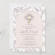 Invitación de Baby Shower de otoño y día de gracias para una niña. Cuenta con un bonito pavo de bebé dibujado a mano y adorables plumas de gingham en un fondo blanco en el frente con detalles de fiesta de personalizable. La parte posterior presenta un patrón de plumas de gingham en una laca oscura contrastante y elegante.
