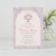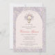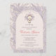Invitación de Baby Shower de otoño y día de gracias para una niña. Cuenta con un bonito pavo de bebé dibujado a mano y adorables plumas de gingham con un fondo lila. La parte trasera está decorada con plumas de gingham de color crema claro.