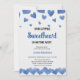 Invitación a una fiesta de bebé con temática del Día de San Valentín perfecta para cualquier futura mamá. Este diseño presenta dulces corazones de acuarela en tonos azules y una delicada tipografía script y serif que muestra 'Un pequeño amor está en camino.'