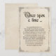 Esta romántica y encantadora invitación a la boda tiene un tema de cuento de hadas de estilo antiguo. El fondo se parece a un papel de pergamino rústico y anticuado con un diseño de libros antiguos. La frase "Érase una vez" se imprime en la parte superior en una fuente elegante de estilo vintage. La información del boda se imprime en un estilo de cuento de hadas con cada línea que da detalles sobre el boda mientras se escribe en la forma de contar una historia.