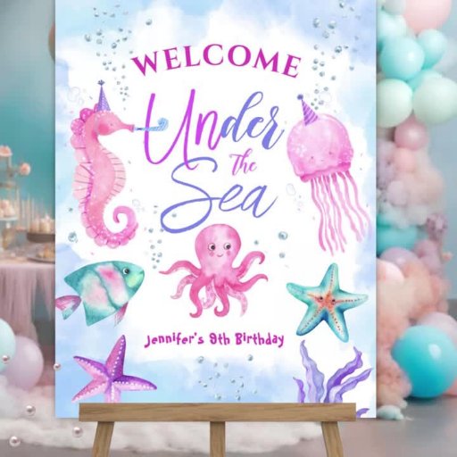 Under The Sea! Pink Ocean Girl 9th BirthdayDiseñado por H-Art Studio Design