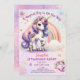 Invitación Unicornio 8 Chica de cumpleaños Purple Gold Rainbo