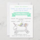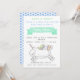 NewParkLane: Invitación para una reunión de bienvenida de un bebé recién nacido, con un lindo unicornio en divertidos colores pastel de arcoíris. En la parte posterior, un divertido patrón de pequeños corazones azules.