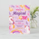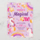 Invitación Unicornio Arcoiris Púrpura Magico Primer Cumpleaño