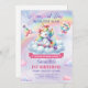Invitación Unicornio chica en una nube y arcoiris primer cump