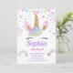 Invitación Unicornio Chica Pastel mágico arcoiris Pink Cumple