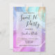 Invitación Unicornio rosa pastel mármol líquido Girly moderno
