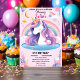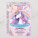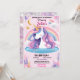 Invitación unicornio rosa púrpura lindo huésped primer cumple