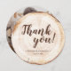 Send a heartfelt and unforgettable note of gratitude with this Rustic Wood Cut Wedding Thank You Card—a round keepsake that’s as unique as your love story. Designed to mimic the natural beauty of a tree ring slice, this one-of-a-kind thank you card features your wedding photo, names, and wedding date, all wrapped in cozy rustic charm.