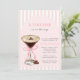 Una Tini está en el camino Chica Invitación Baby Shower - Celebra la llegada inminente de un pequeño paquete de alegría con nuestra invitación a ducha de bebé A Tini Is on the Way. Este encantador diseño cuenta con un espresso martini, decorado con elegancia con una delicada proa rosa, que le da un toque de alegría a una celebración moderna y original. La caligrafía moderna y la tipografía de diseño le confieren un toque sofisticado y contemporáneo, mientras que los suaves tonos azules crean un ambiente perfecto y acogedor para el bebé que está a punto de llegar a su gran entrada. Es la mezcla perfecta de calidez, estilo y emoción para celebrar esta ocasión especial.
