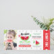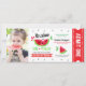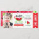 Celebra tu fiesta de cumpleaños con nuestra invitación en melón de primer cumpleaños. El diseño presenta un ilustracion acuático con sandía con "one in a melon" en un texto de estilo lúdico sobre fondo blanco negro en un estilo de entrada de entrada con pases.