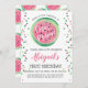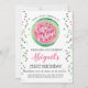 Esta tierna invitación para el primer cumpleaños muestra una sección transversal de una sandía de color rosa y verde, con las palabras "¡Uno en un melón!" en escritura blanca. Personalízalo con el nombre del chica de cumpleaños en escritura rosada y el texto restante en negro. Un borde de confeti rosa y verde decora los bordes izquierdo y derecho, y el reverso tiene un patrón de melón de color rosa y verde. ¡Ideal para una fiesta de cumpleaños de verano de una niña!