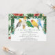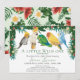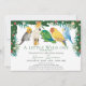 Celebra la próxima llegada de tu pequeño salvaje con esta caprichosa invitación de fiesta de bebé con tema tropical. El diseño presenta un grupo de adorables loros exóticos y vegetación tropical con flores en estilo acuarela