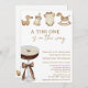 Una invitación a la Baby Shower de Tini is On The Way Espresso Martini: una invitación única y adorable a la ducha de bebé con un espresso martini adornado con un mocha marrón de coqueta y artículos para el bebé, una botella de bebé, un caballo mecedor, traje de bebé y pato de juguete vintage, todos ilustraciones acuáticos. Elegante tipo de letra manuscrita junto con un elegante tipo de letra en color marrón. Edite esta plantilla de invitación a ducha de bebé con sus propios detalles de evento. Perfecto para duchas de primavera, verano o otoño. Para que padres o madres busquen algo diferente y de un tipo. Disponible en descarga impresa y digital, perfecto para enviarlo a través de texto, correo electrónico o medios sociales.