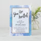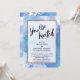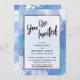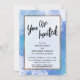Sobre un fondo artístico desordenado que presenta pintura salpicada en tonos de azul, púrpura y turquesa, he colocado un rectángulo opaco bordeado en oro falso metálico para compensar el texto. La parte superior presenta una capa de tipografía simple que dice "You Are Invited" en una escritura a mano moderna y casual. Utilice los campos de la plantilla para agregar sus propios detalles. Todas las capas se agregaron por separado y se dejaron sin bloquear para darle control de diseño. // 105 //