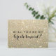 ¿Usted será mi dama de honor? tarjeta completamente nupcial moderna del fiesta del purpurina de la diversión del |. Utilice esta tarjeta para invitar a la familia y a amigos que sean un miembro de su fiesta nupcial. Fácil modificarlo usando el personalizar para requisitos particulares botón, color de fondo del cambio, imagen, color de texto, tamaño del texto, espaciamiento del texto, adaptarse a su ocasión. No dude en para dejar la parte trasera clara mano-escribir su mensaje.
