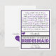 Invitación ¿Usted será mi dama de honor? Poema púrpura/negro