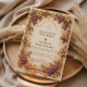 Un diseño romántico inspirado en viñedos, enmarcado con ricas agrupaciones de uvas y hojas de tonos otoñales, que captura la calidez y la elegancia de una celebración en el campo toscano. Los intrincados detalles botánicos y la suave paleta vintage crean una atmósfera refinada pero acogedora, perfecta para amantes del vino y bodas de estilo destino. Con su composición atemporal y encanto de viejo mundo, este diseño aporta un sentido de intimidad, abundancia y lujo tranquilo a tu día especial.