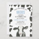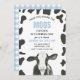 ¡Has oído los rumores! Vaca acuarela con estampado de vaca y invitación a fiesta de cumpleaños con mantas azul claro.