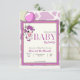 Invitación Vaca rosa morada con ducha de bebé con globo