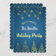 ¡Esta impresionante invitación a pasar unas vacaciones impresiona a sus huéspedes! El elegante fondo azul está decorado con exquisitos árboles dorados y copos de nieve, creando un ambiente lujoso y festivo. Perfecto para su próxima fiesta de vacaciones o reunión, esta invitación marcará el tono para un evento elegante y memorable. ¡No se pierda la oportunidad de hacer una declaración con esta hermosa invitación!