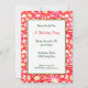 Patrón festivo floral de poinsettia roja y rosa en una plantilla de invitación editable con guion y letras de bloque en rojo y verde.