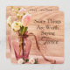 Una hermosa y romántica invitación boda renovada con un jarrón de flores de bonito a ambos lados. La parte frontal incluye el mensaje "Algunas cosas valen la pena decir dos veces". La parte posterior tiene la personalización línea por línea en fuentes elegantes.