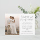Invitación de recepción de boda con "vale la pena esperar para finalmente celebrar" en una elegante letra negra. Personaliza con tu foto.