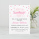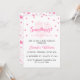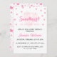 Cute tema El día de San Valentín chica de la invitación a la ducha bebé, tarjeta de plantilla con corazones rosados con un texto de tipografía que dice "un pequeño amor está en camino".
