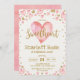 Invitación a San Valentín. Invitación de primer cumpleaños de los corazones dorados rosados. Cariño, invita a Fiesta de cumpleaños. Purpurina Heart Confetti.