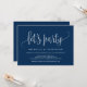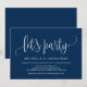 Esta tarjeta de invitación con diseño de caligrafía moderna (vámonos a la fiesta) es perfecta para la celebración/ anuncio de su boda íntima. Agregue sus detalles en fuente/ letra azul marino a juego.