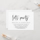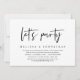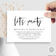 Tarjeta de invitación de boda con tema de letra moderna (Vámonos de fiesta). Es perfecta para su cena de boda informal a orillas del lago, baile y fiesta.