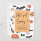 Comienza tu celebración de Halloween con estilo con esta invitación de fiesta divertida y moderna. Con calabazas pintadas a mano, fantasmas, murciélagos, calaveras y acentos de brujas en tonos cálidos de otoño, este diseño combina el encanto espeluznante con la caligrafía moderna para un aspecto divertido y festivo. Perfecto para reuniones de Halloween, fiestas de disfraces, cumpleaños de otoño, eventos de casas embrujadas y noches de truco o trato en el vecindario.