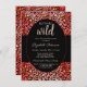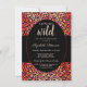 Impresión de leopardo sobre fondo rojo. Haga clic en el botón "Personalizar" - luego "Haga clic para más personalizares" para comenzar con su diseño! Diviértete en tu fiesta nupcial con esta elegante invitación. Invite a sus invitados a levantar un vaso y a unirse a la diversión con estas invitaciones festivas.