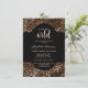Impresión de leopardo sobre fondo marrón. Haga clic en el botón "Personalizar" - luego "Haga clic para más personalizares" para comenzar con su diseño! Diviértete en tu fiesta nupcial con esta elegante invitación. Invite a sus invitados a levantar un vaso y a unirse a la diversión con estas invitaciones festivas.