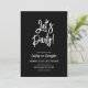 Celebra tu día especial con esta sencilla y elegante invitación de fiesta personalizada. Este diseño presenta un chic "¡Vamos a Festejar!" con letra de pincel con un diseño limpio en combinación de colores negro y blanco. Puedes personalizar esta invitación para cualquier evento (cumpleaños de 40, 50, 60 años, aniversario, fiesta de empresa, etc). Más diseños disponibles en mi tienda BaraBomDesign.
