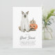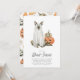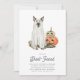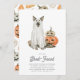 ¿Acoger a un adulto solamente bash de Halloween? Invitar a amigos con estas encantadoras y divertidas invitaciones con un perro usando un disfraz fantasma, flanqueado por calabazas jack-o-lantern de color agua. Debajo aparece "Seamos de hoja", junto con los detalles de tu fiesta de Halloween.