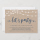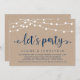 Hermosas luces de cadena de granja rústica moderna, fuente de letra script azul marino sobre fondo de papel kraft, anuncio de fuga de boda, tarjeta de invitación (Vamos a la fiesta). Esto es perfecto para la recepción de su boda y la fiesta de celebración después de la boda. Agregue sus detalles en la misma letra / letra.