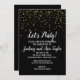 Invitación Vamos a la Fiesta Confeti Dorado sobre Negro Anive