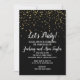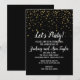 Esta Invitación de Fiesta de Cumpleaños de Bodas Confeti Dorado sobre Fondo Negro es perfecta para una celebración de aniversario de boda elegante. El diseño presenta un fondo negro con confeti dorado falso elegante y caligrafía blanca simple.