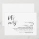 Tarjeta de invitación de boda en intimidad con tema de guión negro moderno (Vamos a la fiesta). Es perfecto para su recepción de boda en intimidad / fiesta de celebración post-boda. Agregue sus detalles en fuente / letra negra coincidente.