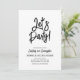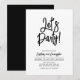 Celebra tu día especial con esta sencilla y elegante invitación para una fiesta de cumpleaños de adultos. Este diseño presenta una elegante letra de pincel "¡Vamos a la Fiesta!" con un diseño limpio en combinación de colores negro y blanco. Puedes personalizar esta invitación para cualquier edad o evento (40, 50, 60 cumpleaños, aniversario, fiesta de empresa, etc). Más diseños disponibles en mi tienda BaraBomDesign.