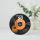Un elegante tema musical, con tema de guitarra, divertido plantilla de invitación para fiesta de cumpleaños en forma de disco de vinilo, que cuenta con una guitarra acústica, un fragmento de una partición y el título "Vamos a rodar 90 años". Puede editar esta plantilla por completo. ¡Sería una gran invitación para una fiesta de cumpleaños para un joven que ama el rock, la música y las guitarras, en su cumpleaños 90! Puedes cambiar el número a 30, 50, 50, 60, 70, 80, 90 o 100, etc. cumpleaños.