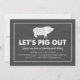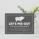 Invite a sus amigos y familias a su cocina de verano con estas divertidas invitaciones en blanco y negro. El diseño presenta un fondo de tiza gris de carbón vegetal cepillado con texto y ilustraciones blancos, incluido un lindo cerdo blanco — que podría querer dejar a los vegetarianos fuera de esta reunión — y "Vamos a cazar" en una rústica y destruida tipografía de bloques.
