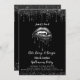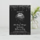 Invitación editable a la fiesta de adultos Halloween con vampiros. El diseño presenta labios negros goteando con sangre y colmillos de vampiros sobre un fondo negro! Glamoroso purpurina negro goteando, purpurina negro y chispas enmarcan la carta. Personalice el texto y cambie el estilo de fuente y el color a la medida. El purpurina no es un purpurina "real" sino un efecto impreso.